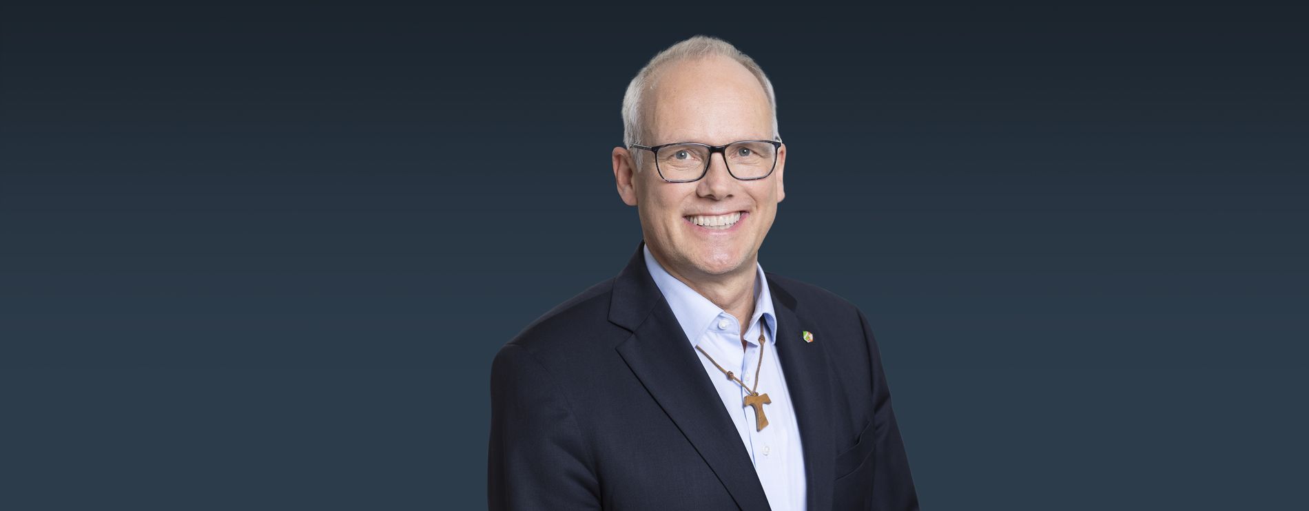 Viele fragen nach dem einfachen Holzkreuz, das ich trage. Es hat die Form des griechischen Buchstabens „Tau“. Der Hl. Franziskus hat es oft verwendet als Segenszeichen. Es ist für mich ein Zeichen für die Verbindung zu Gott und zu den Menschen. Das christliche Menschenbild schließt nach meinem Verständnis niemanden aus. Es formuliert einen Standpunkt, ist aber auch offen für alle, die die Würde, die Gleichheit, die Freiheit und die Verantwortung der Menschen nicht aus dem christlichen Glauben herleiten.
